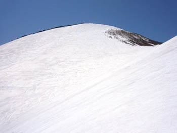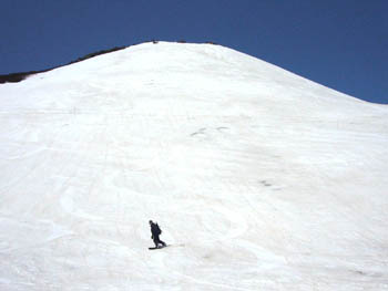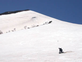 岩木山ピークから百沢スキー場へ滑り込む人は少なく貸切のバーン。