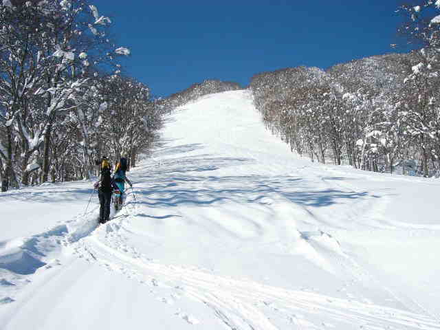 朝の黒姫山。滑ったのは右のスカイライン。 ゲレンデ上部から登り始め。 姫見台から稜線を望む。 すばらしいロケーション! 稜線から妙高山。 ツリーの中は快適な斜面とパウダー! rider:float-decko 駐車場まで標高差1300mのダウンヒル。 telemarker:s-san