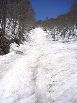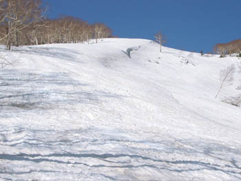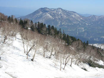 杉ノ原のゲレンデ付近から三田原山。 笹ヶ峰から天狗原山、金山、焼山。豊富な残雪で、まだまだ真っ白。 スキーコースのような涸沢を、稜線までダイレクトに詰めます。 高妻山も、雪いっぱい。 中腹から黒姫山。 上部はオープンバーンが広がります。面もまだきれい! 雪は快適なザラメ。 稜線からは妙高山がバッチリ。 上部のオープン&ツリーからナチュラルパイプの涸沢を笹ヶ峰まで滑って振り返る。