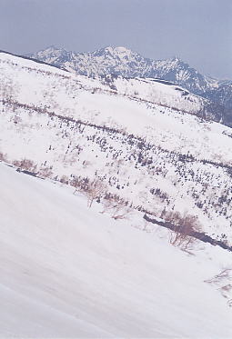 剣ヶ峰から蚕玉岳、富士見岳方面。滑るところは、いっぱいある。