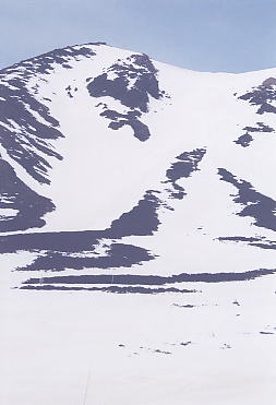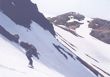 今回滑ったのは、左端のライン。頂上直下からのシュート。