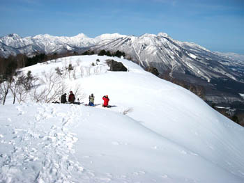 ピーカンのツアー日和。今日はテレマークで。 ゲレンデTOPから1時間ちょっとで山頂。テーブルを掘って、ランチを楽しむ。 瑪瑙山の向こうに白馬三山。 黒姫の影に妙高山。北側の雪は軽かった。 ひときわ真っ白な火打山&焼山。 下りはあっという間。いい感じのザラメでした。