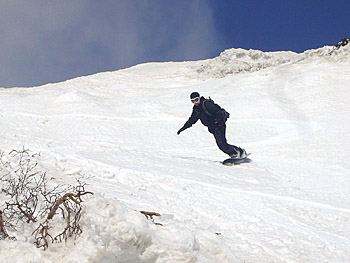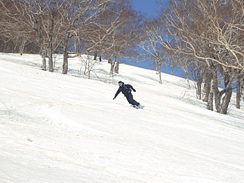 見上げれば、山頂より落ちるオープンバーンが広がる。