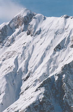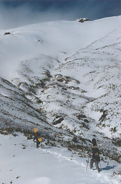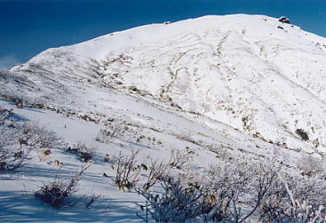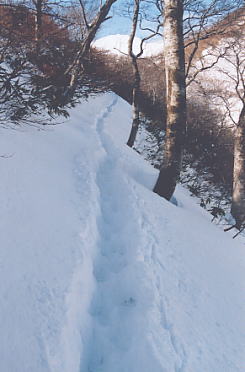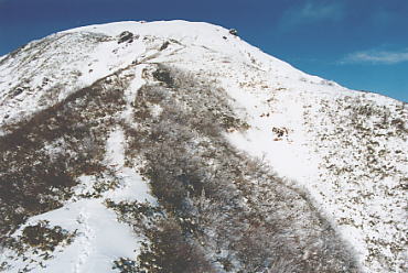 前日の積雪は20〜30cmほど。 樹林帯のトレース。 天狗の留り場から山頂を望む。 マナイタグラ。この下には関越トンネルが走っている。 肩の斜面。 霧氷。 ラッセルはひざくらい。 rider:mizz-san rider:guccyo-kun 滑ってきた斜面を振り返る。 この周辺はオジカ(雄鹿)、マチガ(真鹿)、中ゴー(熊射ちの穴)、タカノスなどマタギ用語が地名になっていておもしろい。