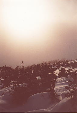 上から見た天狗原。斜度は25〜30度くらいかな?