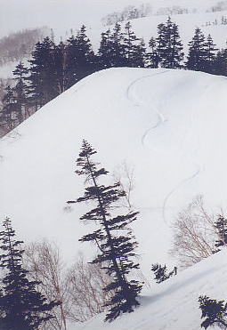 ゴンドラ終点から鵯峰。 鵯峰への登り。 ノートラックの斜面と白馬岳。 雨飾山、火打山。 鵯峰。 rider:K.K 左側の平らなところが天狗原。 天狗原のオープンバーン。 rider:nabe トラック。