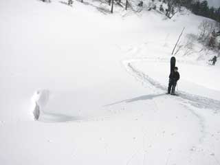 先行者も多くてトレースもバッチリ。 沢は埋まりきっていないところも。 ・・・甘くは無かった。先行者はすべて栂池自然園へ。 天狗原へは、成城小屋からラッセル・・・。 しかしラッセルの後には・・・。 この斜面が(笑) ピーカンパウダー。 rider:K.K 風でほどよく締まった雪。 rider:K.K オーバーヘッドのスプレー。 rider:float-decko 散らかしてしまいました。