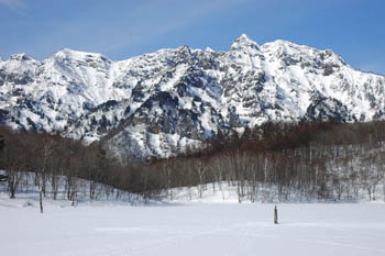 朝起きてみると快晴。午後から仕事だったので、サクっと歩いてきました。朝の大座法師池から飯綱山。 自然園から鏡池まではスキーで1時間かからないくらい。正面に西岳。 戸隠山もすばらしい。鏡池裏の丘をシールで直登して、自然園まで滑り込みました。