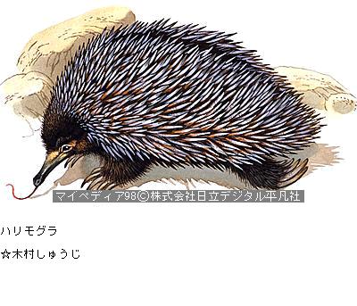 オーストラリア 生物は他の大陸に見られない原始的な種を含む点に特色があり、ハリモグラ、カモ ノハシの単孔類、カンガルー、フクログマなどの有袋類、鳥ではエミュー、コトト゛ リなどの、固有種がすむ。コアラは有袋類の一種である。 ハリモグラ 卵生の原始的な哺乳類。体長30〜45cm。吻は細くて突出し、体はトゲでおお われている。夜行性で森林、草むらなどにすみ、アリなどの昆虫を舌でなめて食べる