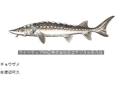 キャビア caviar チョウザメの卵の塩漬で世界的な珍味とされる。普通はうすい黒灰色だが,緑色や金 色のものもある。冬季,黒海,カスピ海方面の川でとれるものの卵が最高といわれ, 8〜10%の食塩水で熟成して作る。オードブル,カナッペ,酒のさかな等に用いられ る。