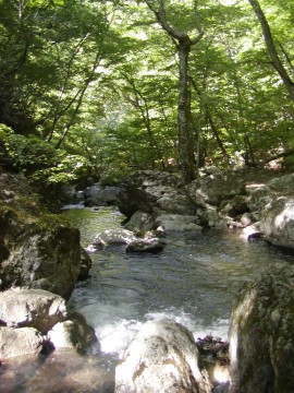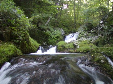 | 小出谷川(沢歩き) 9月14日(日) やってみたかった「沢歩き」をいよいよ決行。 「沢登り」でなく「沢歩き」。 沢登りのように大がかりではなく、 安全な沢を気軽に楽しむ「沢歩き」。 渓流シューズをはいて水の中をジャブジャブ歩いていく。 ホントに気持ちいい。 こんな楽しみ方、もっと認知されてもいいんじゃないかな。 今日は前々から目をつけていた請戸川水系の小出谷川。 登山道なんてない、ただ沢をたどるのみ。 ま、僕のヒミツの場所みたいなもんだ。 ![]() はじめは穏やかな流れが続く。 ![]() 人ひとりいない静かな世界。 ![]() 明るい渓谷で気持ちよく歩ける。 ![]() いい感じの流れがずっと続く。 ![]() だんだん険しくなってくる。 ![]() 小滝を登っていく。 ![]() みずみずしい光景 ![]() 最後の滝(地形図415m) 右岸の草付きを高巻く。(アブナイのでお薦めできない) この滝の手前で林道にあがったほうがよい。 ![]() 滝を越えたあとは穏やかな光景となる。 ![]() 樹林が美しいので林道歩きも苦にならない。 (約20分の下り) <概要> 請戸川水系・小出谷川 福島県(葛尾村) <天候> 晴れ。 台風通過後のさわやかな天気。 最高気温は30℃といったところか。 風はほとんどなし、湿度も低め。 歩くのに際しては非常に快適な天気だった。 <コース> 小出谷集落より入渓。手元の高度計で300m。 430m地点で林道(県道50号)に上がる。 小出谷集落入口の橋をわたってすぐのところに駐車スペースあり。 下図参照のこと。 ![]() <アプローチ> 車を使用。 常磐道・広野ICより、R6、R114、県道50号を経由 <メモ> 渓流シューズ(または渓流タビ)は必携。 遡行にかかる時間は2時間程度。 上流にダム等はない。 ただし、上流に集落や田んぼがあるので水は飲まないように。 ちょっぴりゴミがあったりするのが玉にキズ。 それでも、気持ちいい沢歩きを満喫できる。 地形図は「下津島」(福島3号-4) <今回の装備> 足まわりは渓流シューズ+渓流スパッツ+渓流ソックス 上は速乾Tシャツのみ 下は速乾ブリーフ+ジャージのハーフパンツ あとはアプローチ用のジョギングシューズ 装備・食料等の量は小型デイパックにすべて収まる程度。 余計な装備を省き、あくまでも身軽を優先した。 |