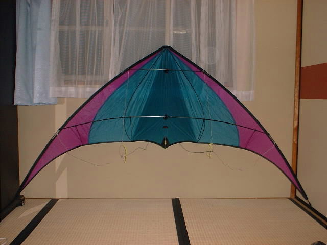 | エアリー社 K−2 AV220 Jinのカイト。 中田島にて一度はその翼を畳むが、ロッド(骨だよ)を新しく換えることにより、また風を受けることになった。おかえり、K2♪ |