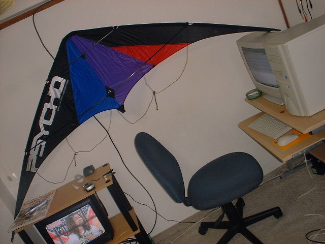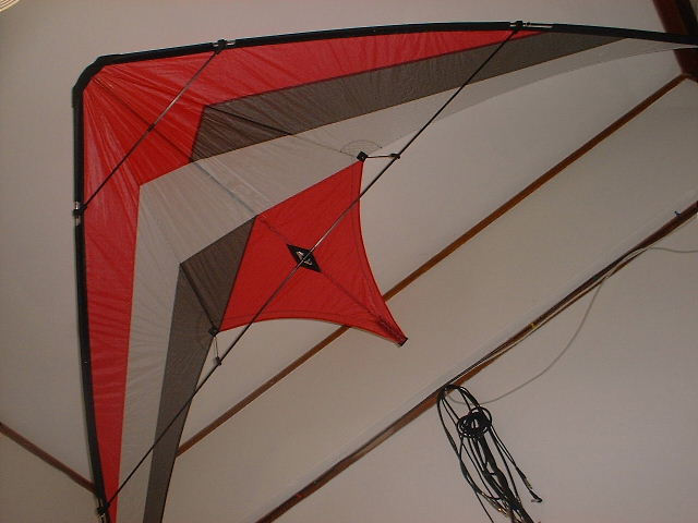 フレキシフォイル社 サイコ Jinのカイト トリック用に作られたカイトのためか、作りが少々違う。 これを自由に飛ばせるようになるのはいつだろうか? |