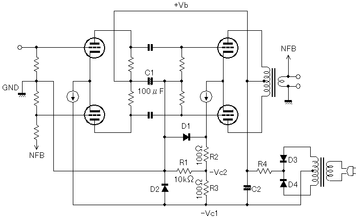 上図は模式図で、実際的にはバイアス電圧を適正にするための工夫が必要です。