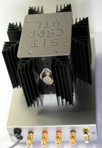 対称に配置された放熱器の幾何学的な形にイメージするものは黒い雪の結晶だろうか。大骨の連なりがクロス状に見える造形はCSPPアンプにこそ相応しいと評価できる。