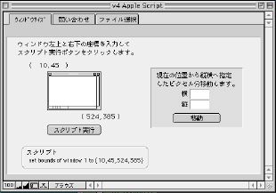ファイルメーカーPro4.0でファイルメーカーProのスクリプトに書かれた Apple Scriptが自分自身に対して送れるようになりました。スクリプティング機能 拡張や他アプリから制御していたものが不要になります。 そこで3つ程サンプルを作りました。