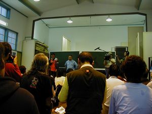 作業終了後、もりの学校にもどり、閉校式と、野口健さんのミニ講演会が行われました。