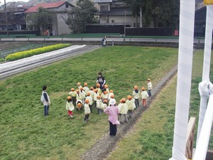 幼稚園児が見に来ていました。これからお弁当だそうです。