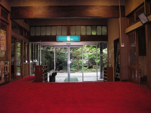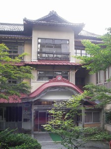 旅館正面玄関と玄関中より 自炊の部と旅館の部があります。