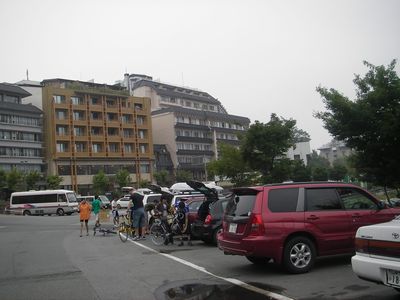 出発準備、ちょっと空模様が怪しい。山がみえません。