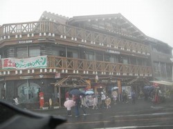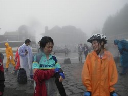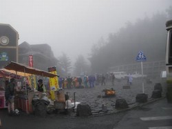 終点(富士山五合目)標高2,305m 雲の中でした。でも、たくさんの人で都会のバスターミナルのようでした。