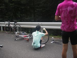 パンク修理、途中で、石が落ちてきていたところで、とがった石を踏んでしまったそうです。