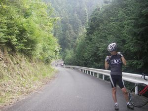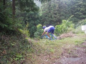 指を指しているところ、道が見えません。ここを、MTBではなく、ロードバイクで降りていくそうです。