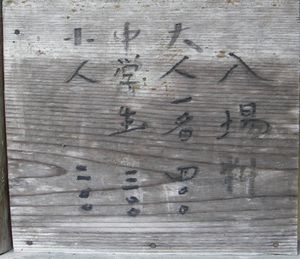 大増(だいます)鍾乳洞入り口、手書きの料金表です。個人が開いている鍾乳洞です。