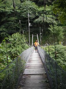 吊り橋を(いっしょに渡るのは3人まで)![]()