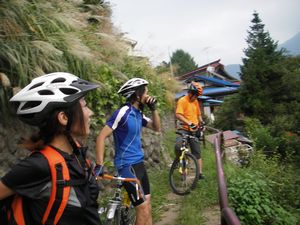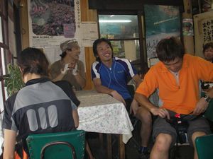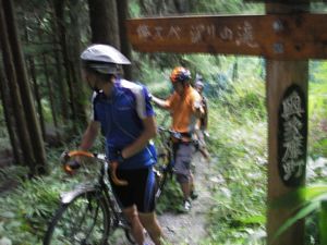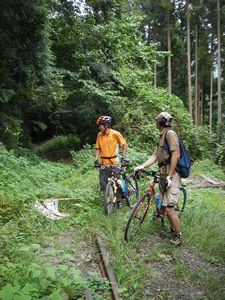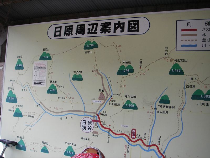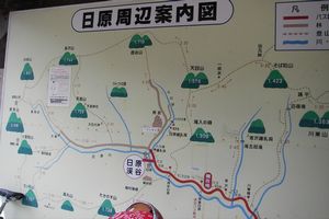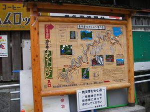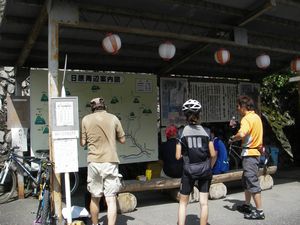 案内図を見ながらしばらく談笑。ここまで来る途中のちょっと怖い立て看板と案内板に張ってある張り紙のお話。(^^; |