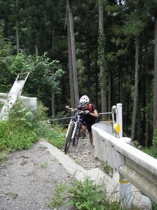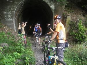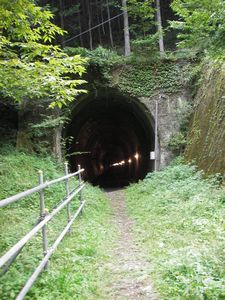 ダム工事の鉄道の廃線(この向こうにトンネルが見えます) |