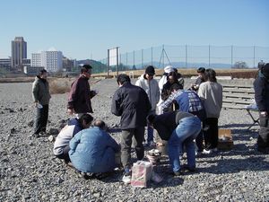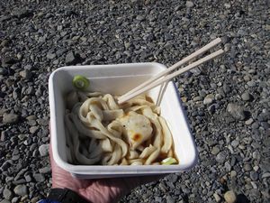 走ったあとの昼食会です。今年のうどん職人は、M路師匠でした。うどんと、お餅、おいしかった。
