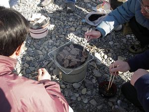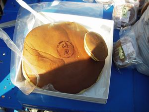 ジンギスカンと、お餅。七輪で焼くとなおおいしい。 ジャンボどら焼き。普通の何個分でしょうか。