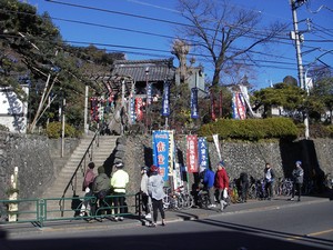 阿須公園から小木曽街道を青梅に向かい青梅坂トンネル手前に1番目の福の神、寿老人(聞修院)に到着。