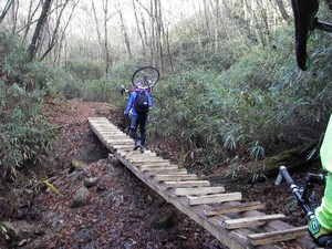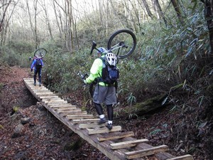 分岐です。橋を渡って、ここから担ぎのはじまり!!(^^;