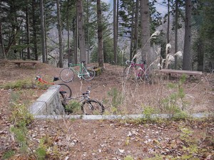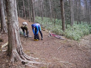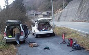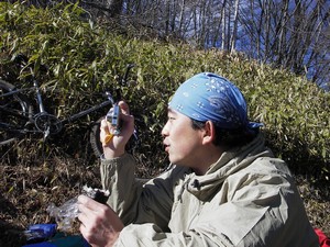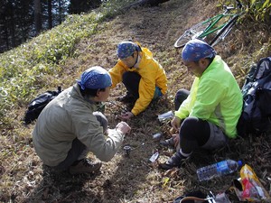 山サイ出発 準備中 登山道の入口にて準備中。ここは、甲府市です。(以前は、塩山市でした。)