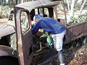 はしゃぎ過ぎかな。荷台から桜の木が生えています。次は、桜の季節に来たいです。