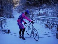 出発前のチェック。ここに来る前に路面凍結で転倒したそうです。