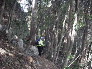 天覚山から大高山へ、険しい道で、ほとんどが担ぎでした。