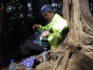 大高山に向かっているとき、すれちがったハイカーの方々も休憩していました。