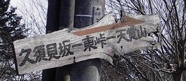 久須美坂への看板がある。少し高い位置にあるので、見落とすかも。
