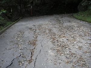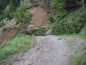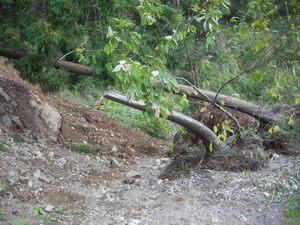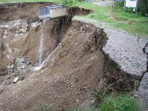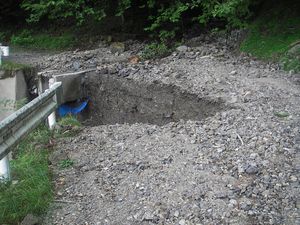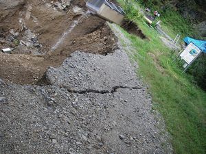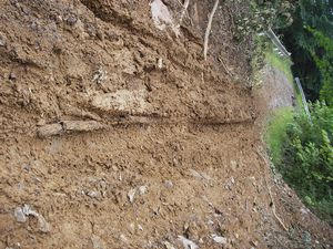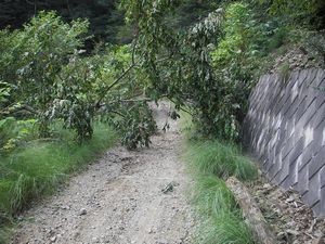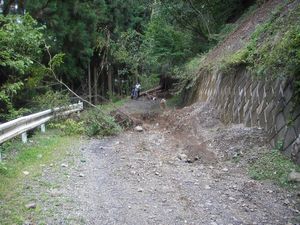 崩落2か所目です。ここは、さほどひどくありませんが、また、雨が降ると崩落するかも。