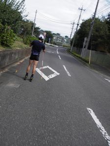 早稲田大学の所沢キャンパス近くで、道路を滑る人たちを見かけました。