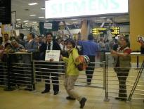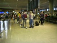 アメリカ入国は、両手人差指の指紋と顔写真の撮影のため、長い行列です。荷物は、受け取ることなく乗換手続きが完了しました。