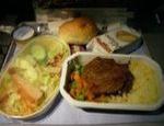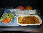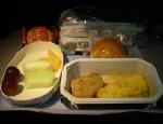 成田を出発して2時間ほどで、夕食。そして、5時間後(日本時間23時過ぎに朝食が。。座っているだけでは、お腹すかないよぉ(^^;