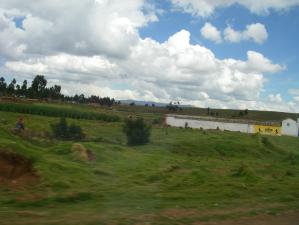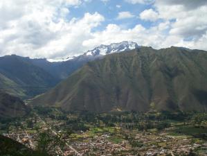 クスコから車でウルバンバの町へ、村の広場には、サッカーのグランドが見えます。