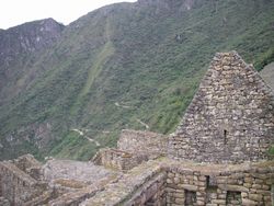 オリャンタイタンボの駅から列車(ビスタドーム)とバスでマチュピチュに到着。