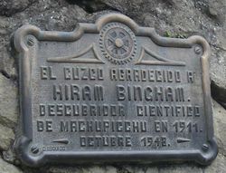 マチュピチュを1911年に発見したハイラム・ビンガムのプレート