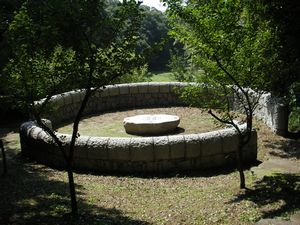 行き止まりから戻って、滝の入不動方面に下ってみました。不思議な石の囲いがありました。
