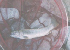 それでも、根気よく瀬脇などを攻めると、18cmのイワナが釣